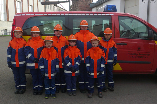 Durch die Stadt Falkenstein, den Feuerwehrverein und zahlreicher anderer Unterstützer, konnten im September 2014 endlich die lang ersehnte neue Dienskleidung, wie wetterfeste Parkas, Helme, Handschuhe, Schuhe, Gürtel, Hosen und Jacken für die Jugendfeuerwehr beschafft werden.